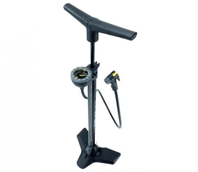 Pompa bicicleta Topeak JoeBlow Race de podea dispune de cap valva Smart Head cu buton de eliminare a aerului, de o baza solida cu 3 picioare si de un furtun de 120 cm, ceea ce o face ideala pentru standul de lucru.