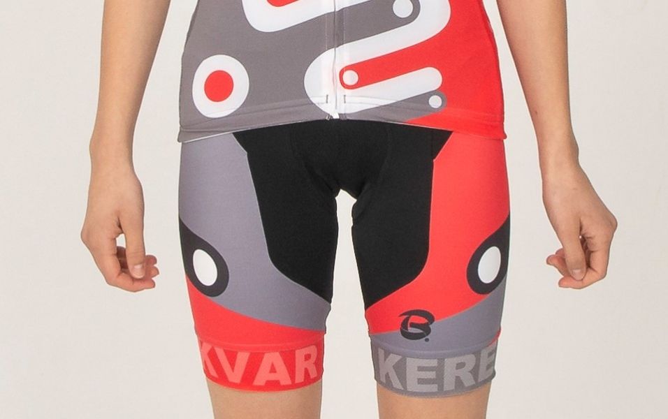Pantaloni ciclism Kerekvar PRO alb-rosu